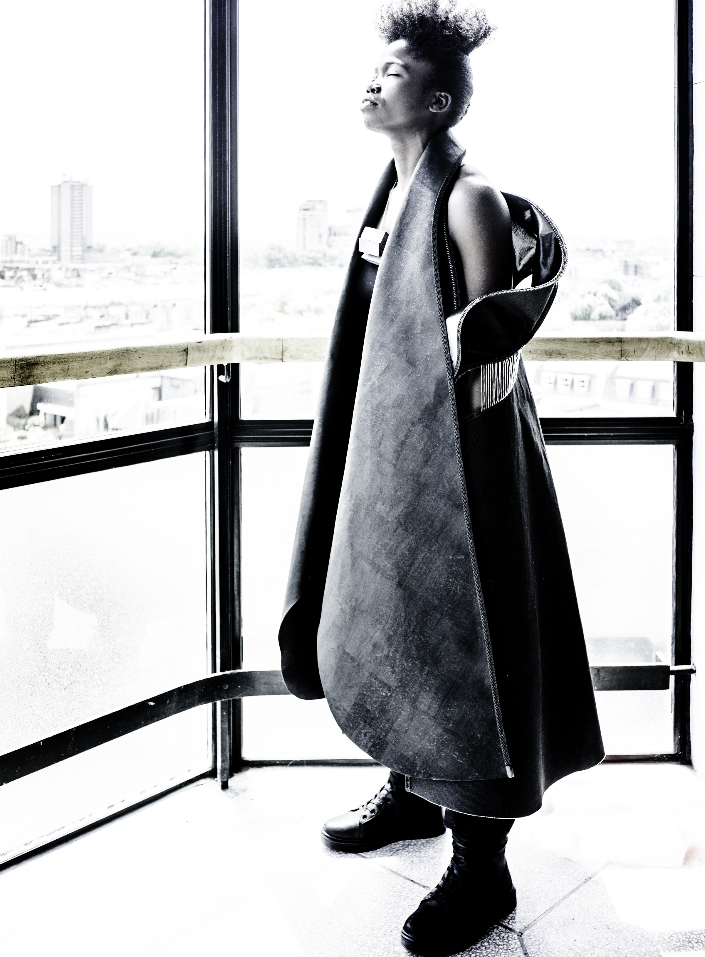 The fabrics are unusual, irreverent and surprisingly organic. Cork skin, horsehair canvas, denim, linen and cottons, as well as accessory materials steel and concrete, are all slowly rendered black, by foiling, coating and staining. Their properties immediately change, they appear tough yet desirable, challenging contemporary notions of luxury and desirability.